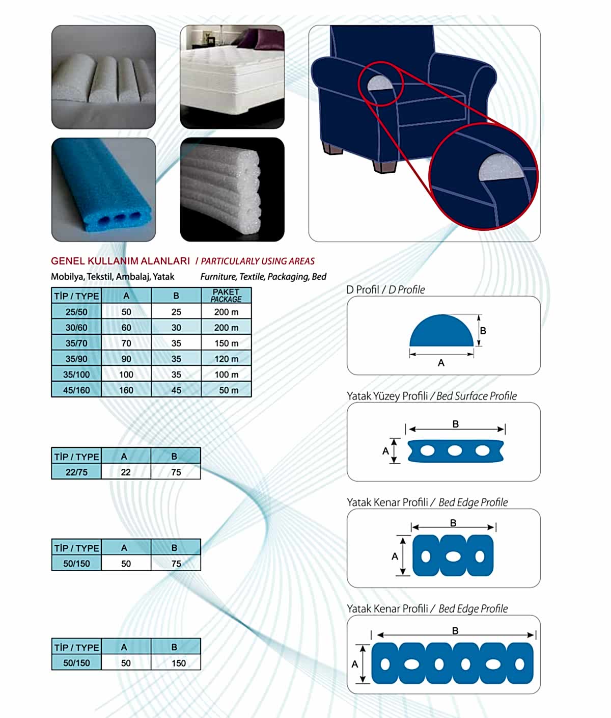 Köpük kordon fitil ve profiller, özellikle mobilya ve döşeme sektöründe önemli rol oynamaktadır.